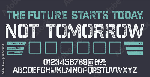 Vector illustration on a theme of American jeans, denim and raw. Handmade Vintage Font.