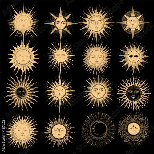 Vector illustration set of moon phases. Different stages of moonlight activity in vintage engraving style. Zodiac Signs