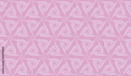 Vector illustration with modern decorative pattern in triangles style. Illusion curved line. For interior wallpaper, smart design, fashion print. Light purple color. Seamless