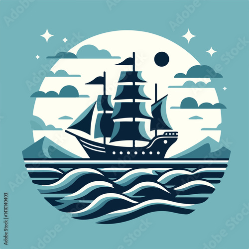 vector image of a sailing ship sailing in the ocean