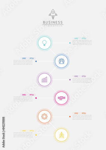 Vector infographic business presentation template with circular interconnection with 6 options.