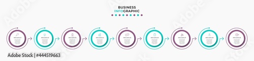 Vector Infographic design illustration business template with icons and 9 options or steps. Can be used for process diagram, presentations, workflow layout, banner, flow chart, info graph