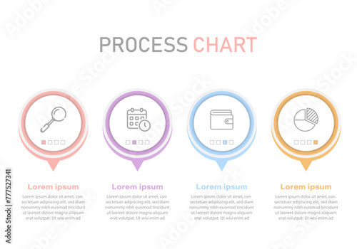 Vector infographic design with icons and 4 options or process steps. Presentation, workflow layout, banner, flow chart, data graph.
