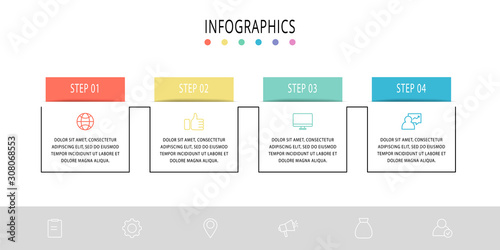 Vector infographic flat template. Rectangles for four diagrams, graph, flowchart, timeline, marketing, presentation. Business concept with 4 labels