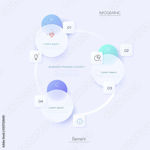 Vector Infographic, infograph template, Glass morphism effect design, Infographics 3 steps or option for business concept, timeline process, chart, scheme presentation, workflow, banner, diagram