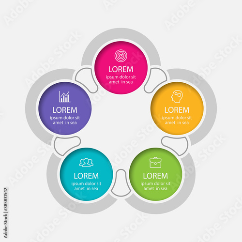 Vector infographic template, circle with 5 steps or options. Data presentation, business concept design for web, brochure, diagram.