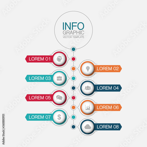 Vector infographic template with 8 steps or options. Data presentation, business concept design for web, brochure, diagram.