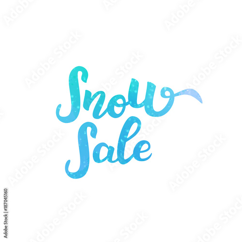 Vector isolated lettering of Snow Sale for decoration and covering with watercolor style on white background. Concept of winter and happy new year.