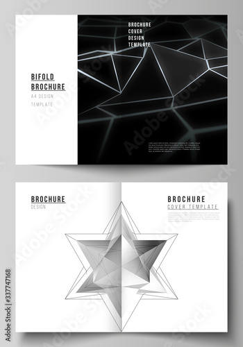 Vector layout of two A4 format modern cover mockups design templates for bifold brochure, flyer, booklet. 3d polygonal geometric modern design abstract background. Science or technology vector.