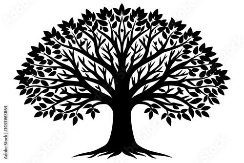 Vector Line Art Tree Illustration – Minimal Tree Clipart, Logo Icon Design on White Background