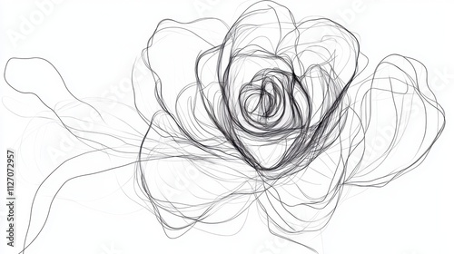 Vector line drawing of a rose in continuous black stroke, symbolizing timeless elegance on a white canvas.