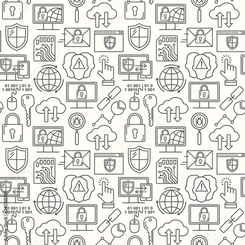 Vector line style seamless internet security pattern. General Data protection linear concept. Web privacy and safety outlune background.