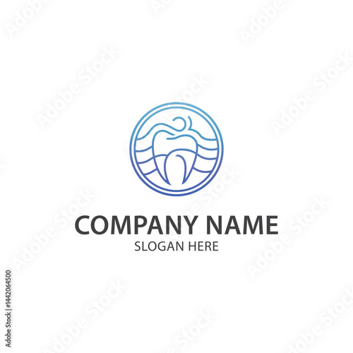 Vector logo of a stylized tooth combined with wave lines inside a circle, representing dental health, hygiene, and freshness. Perfect for dentists, dental clinics, orthodontists, dental care products