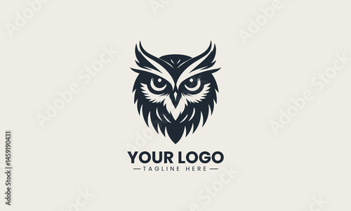 Vector logo of focused owl face silhouette in minimal and wise bird illustration design