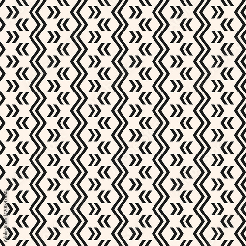 Vector monochrome geometric seamless pattern with zigzag lines, stripes, chevron