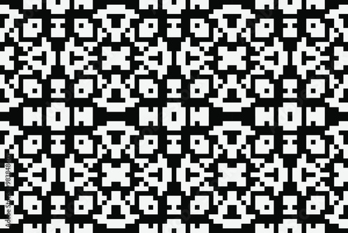 Vector monochrome ornamental pattern in ethnic style. Traditional folk motif. Abstract geometric seamless texture with floral shapes, grid,