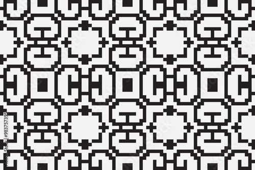 Vector monochrome pixel background. Abstract seamless pattern with small random scattered squares, rectangles, tiny dots. Black and white minimal