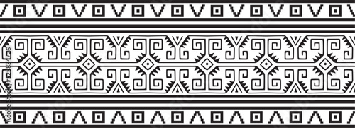 Vector monochrome seamless ornament of Native Americans, Aztecs. Endless border of the tribes of South and Central America.