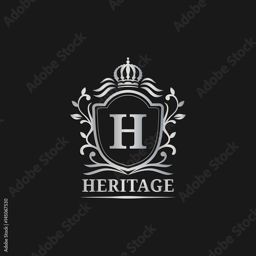 Vector monogram logo template. Luxury letter design. Graceful vintage character with crown illustration for hotel etc.