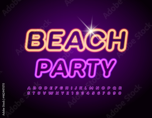 Vector Neon Sign Beach Club. Bright Electric Font. Illuminated Alphabet Letters and Numbers set