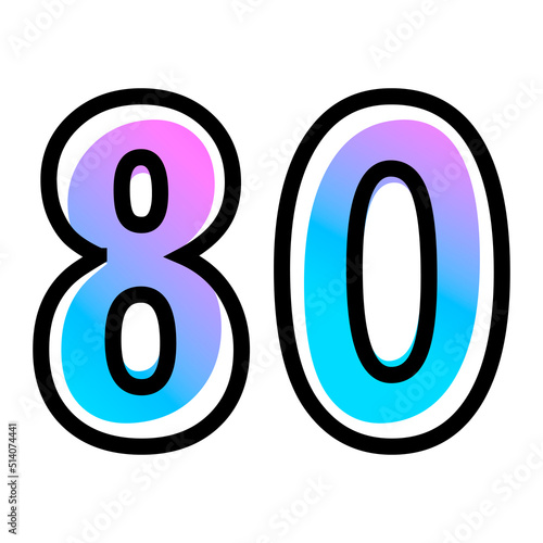 Vector number 80 with blue-purple gradient color and black outline
