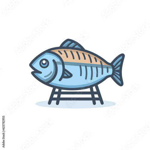 Vector of a fish sitting on top of a wooden stand
