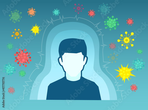 Vector of a man with Immunity and antibodies against microbes and viruses