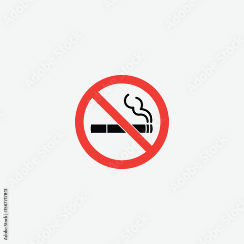 Vector of a no smoking sign featuring a cigarette with smoke, enclosed in a prohibition symbol. Ideal for health, safety, and anti-smoking campaigns.