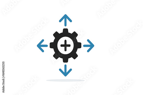 Vector of aim with gear wheel and plus sign. Symbol of calibration..