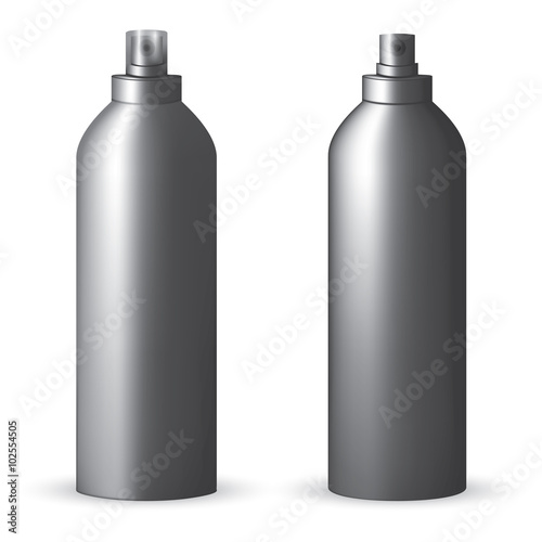 VECTOR PACKAGING: Set of dark gray tall and thick round bottle sprayer with and without transparent cap for cosmetic/perfume on isolated white background. Mock-up template ready for design .