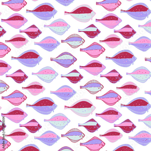 Vector pattern of flounder fish. Lots of colorful fish. Fish day. For print.