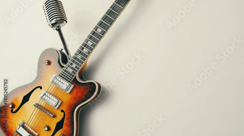 Vector poster for festival of live country music with electric guitar and microphone on a light background in retro style