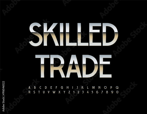 Vector premium icon Skilled Trade. Stylish Silver Font. Steel Alphabet Letters and Numbers set.