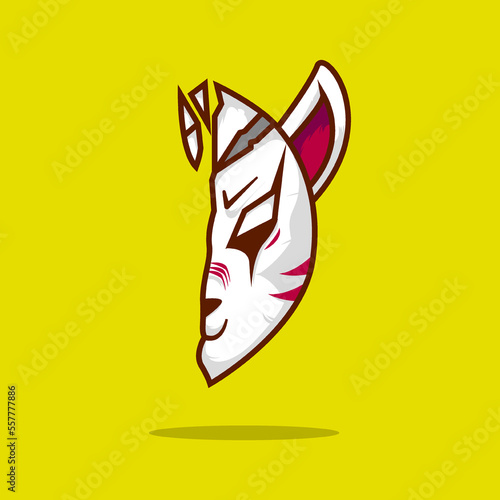 vector premium l cute vector japanese kitsune mask with background. illustration flat.