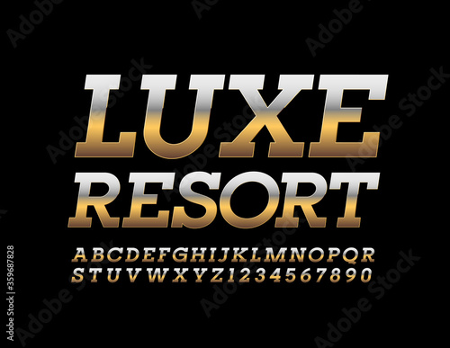 Vector premium logo Luxe Resort with Golden modern Font. Elite Alphabet Letters and Numbers