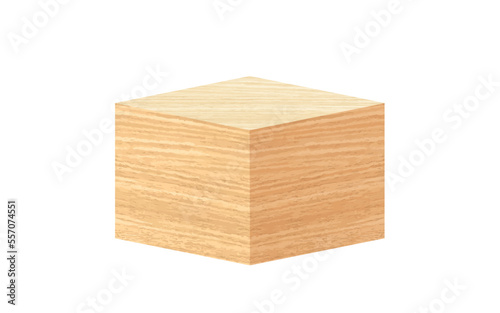 Vector realistic wooden square box. 3d isometric wooden cube shape. Hardwood isometric block cut piece. Nature light timber brick. Kids alphabet word game template. Podium, platform, pedestal