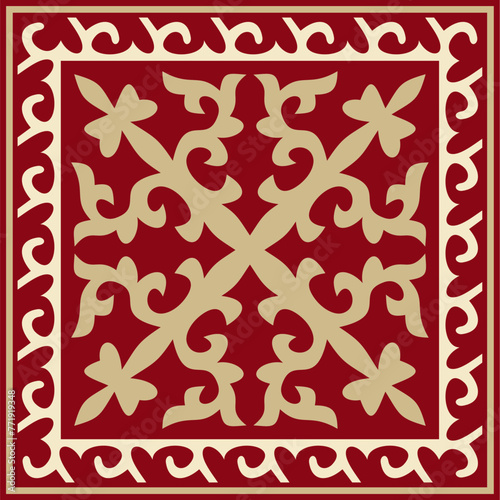 Vector red with gold Square Kazakh national ornament. Ethnic pattern of the peoples of the Great Steppe, .Mongols, Kyrgyz, Kalmyks, Buryats.