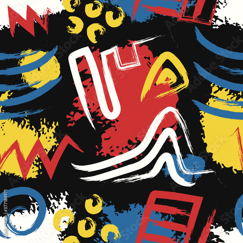 vector rough four color freeform brush stroke overlapped seamless pattern on black