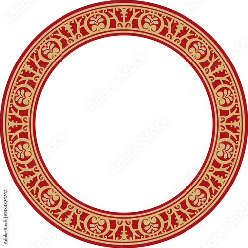 Vector round gold with red border, frame, Pompeii ring. Circle Neopolitan ornament. Art of Ancient Rome