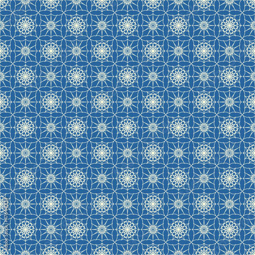 Vector, Seamless, Abstract Image in The Form of a Shaped, Diagonal, White Grid of Stars On a Blue Background