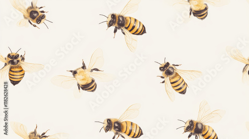 Vector seamless background of bees. Chaotic bees