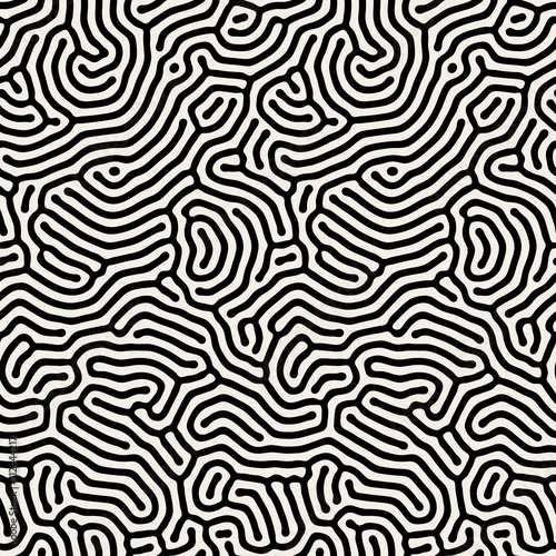 Vector Seamless Black And White Coral Maze Line Organic Pattern