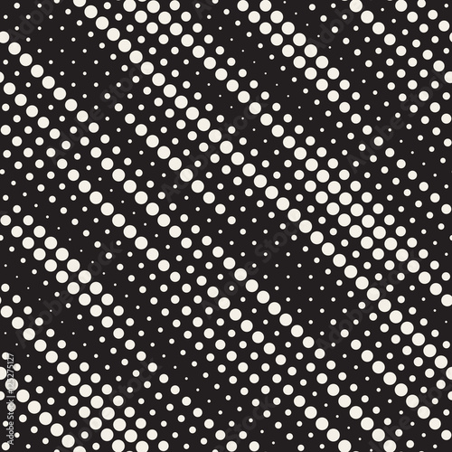 Vector Seamless Black and White Diagonal Halftone Circle Lines Pattern