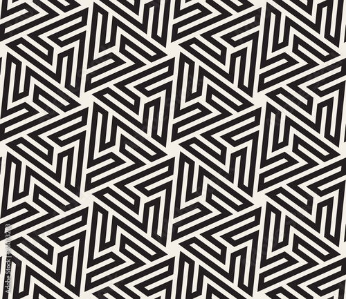 Vector Seamless Black And White Hexagonal Geometric Star Maze Islamic Line Pattern