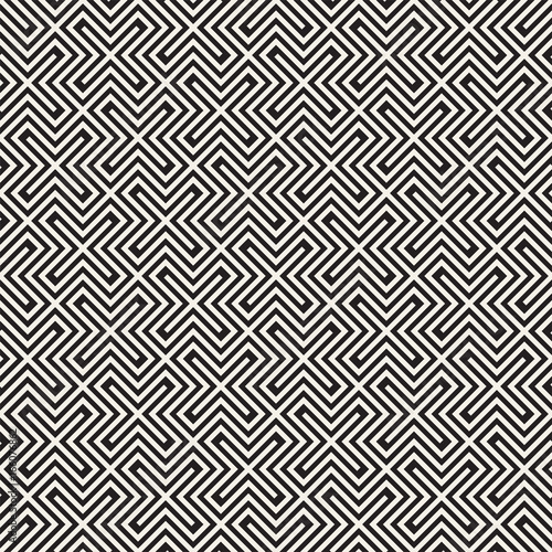 Vector Seamless Black And White Lines Pattern Abstract Background. Cross Shapes Geometric Tiling Ornament.