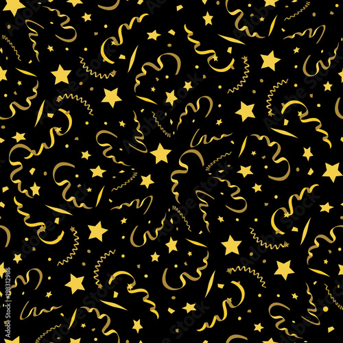 vector seamless festive pattern, stars and confetti