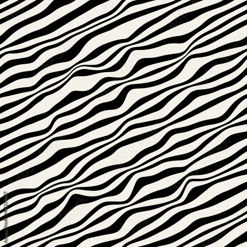 Vector seamless pattern. Abstract distorted striped texture. Monochrome curved stripes. Creative bold wavy background. Decorative design with distortion effect. Can be used as swatch for illustrator.
