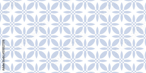 Vector seamless pattern in oriental style. Simple blue and white geometric floral ornament. Abstract minimal background. Elegant texture with flower shapes, tiles. Repeated geo design for decor, print
