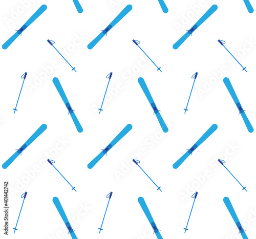 Vector seamless pattern of flat cartoon colored skiing isolated on white background