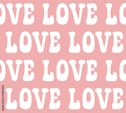 Vector seamless pattern of retro groovy love lettering isolated on pink background